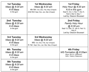 K-8 Holy Hour and adoration (ELA Gym)